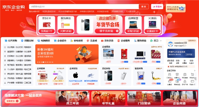 作为京东为中小企业提供快采购、轻管理、一站式采购服务的平台,京东企业购基于对行业趋势与企业需求的深刻洞察,创新推出2026年货节中小企业专属采购方案,以“数智化赋能+全链条履约+精细化服务”为核心,突破传统“单纯供品”框架,从采购决策、履约配送到服务保障全链路发力,助力中小企业实现低成本、高效率、高品质采购,将政策红利转化为触手可及的采购体验。