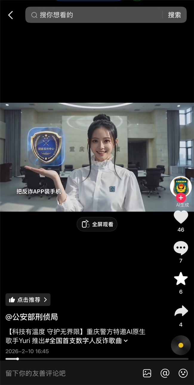 在内容制作上,该歌曲充分运用生成式AI技术,借助AI辅助完成歌词打磨、旋律生成和虚拟偶像的动作口型匹配,大幅提升了内容迭代效率。正如AI.TALK创始人、生成式歌手Yuri构建者赵汗青所说,在生成式AI技术快速落地的2026年,用年轻人喜爱的形式做反诈宣传,能让公益宣传更有温度、更接地气。