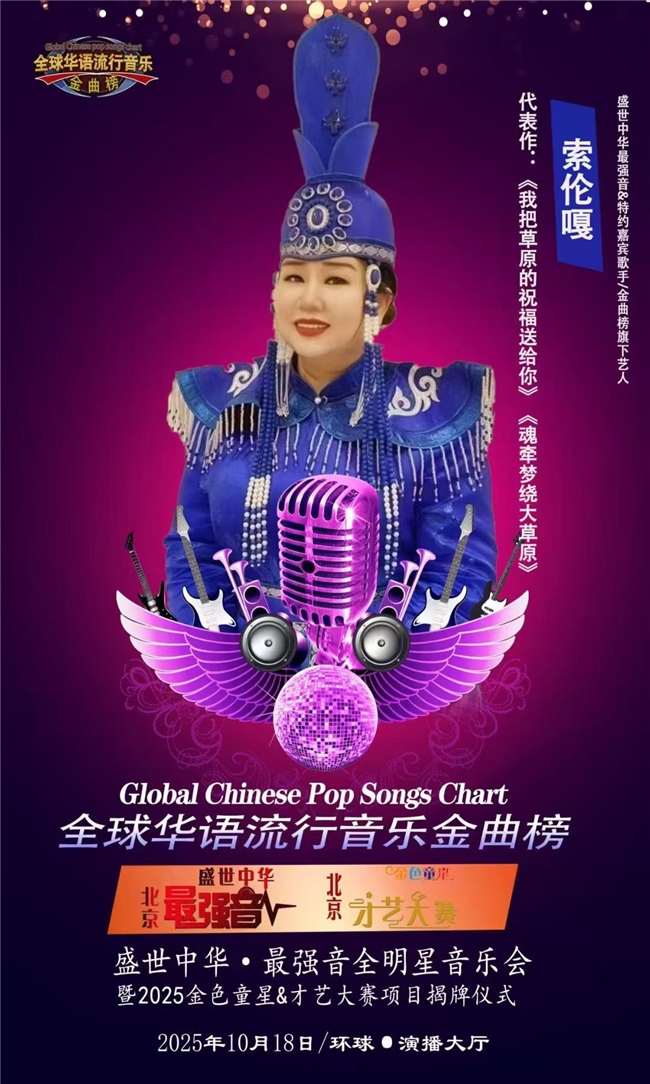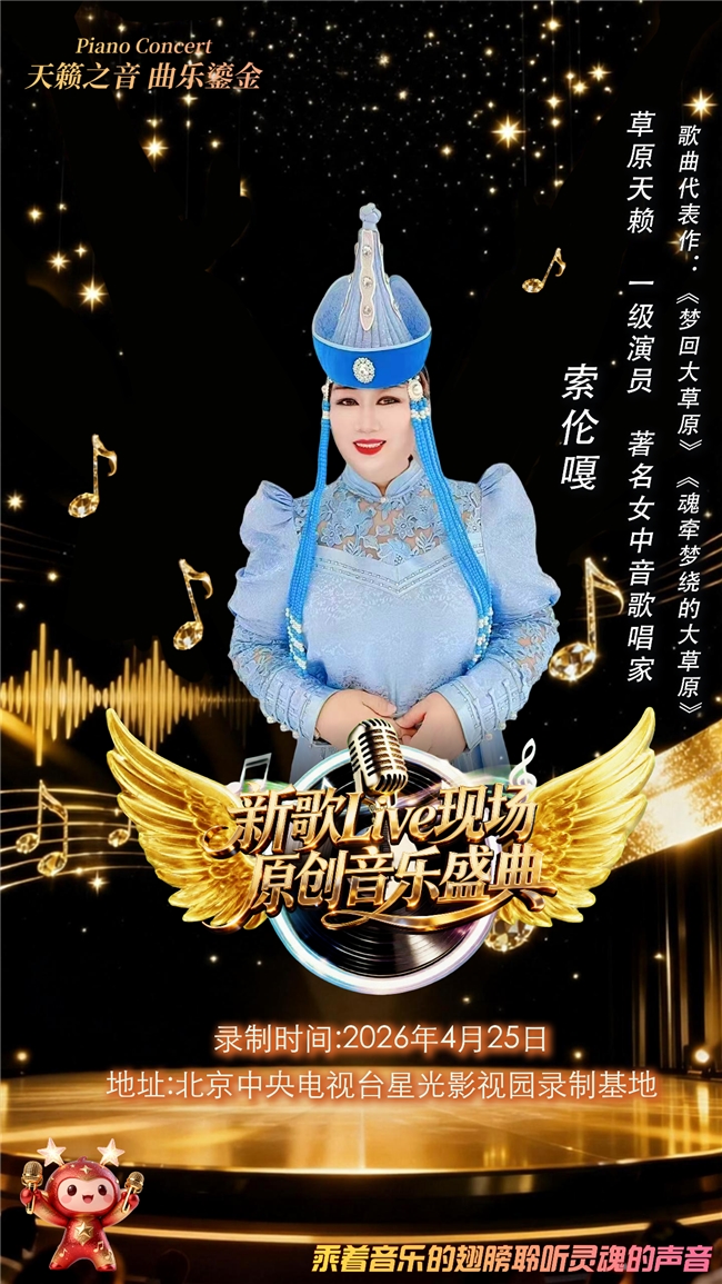 歌声袅袅辞旧岁,喜气洋洋迎新春。随着2026年新春钟声的即将敲响,索伦嘎的祝福将伴随着她的歌声,通过电视、网络传遍千家万户,响彻五洲四海。在这个团圆的节日里,让我们聆听最美女中音的天籁之音,感受草原儿女的质朴深情,共同迎接马年的到来。愿山河无恙,人间皆安;愿春风得意,马到成功;愿每一个美好的梦想,都能在2026年绽放光彩!