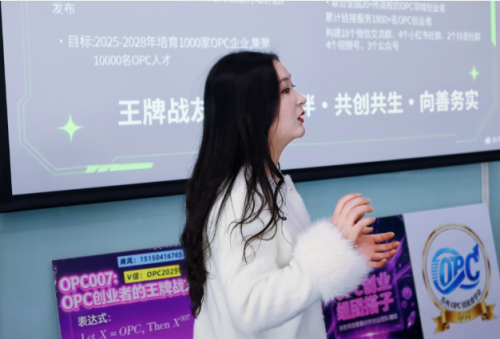 关于发展现状,学会已搭建18个微信交流群、4个小红书社群、2个抖音专属社群,运营3个视频号和2个公众号,设有10个职能部门,12位讲师,累计覆盖1800多名OPC领域创业者。