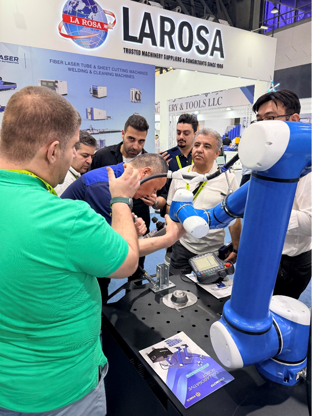展会现场,卡诺普最新一代激光焊接机器人展现毫米级精密切割实力,其针对高温环境强化的散热与稳定性设计,精准契合中东地区重型装备、能源基建领域的作业需求;协作焊接机器人则以操作简易、高性能的优势,为当地工厂破解技能人才瓶颈提供了优质自动化方案。