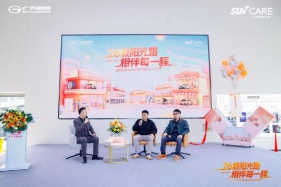 当日,广汽商贸联动旗下全国销售门店,依托线上线下多渠道,共同举办主题车主沙龙活动。在广丰一店、北京长瑞等标杆门店的现场,记者见到新老车主齐聚一堂,共话相伴的温情场面。活动主题曲《与阳光同行》是广汽商贸员工与AI共创的歌曲,诉说着阳光关怀的品牌初心。
