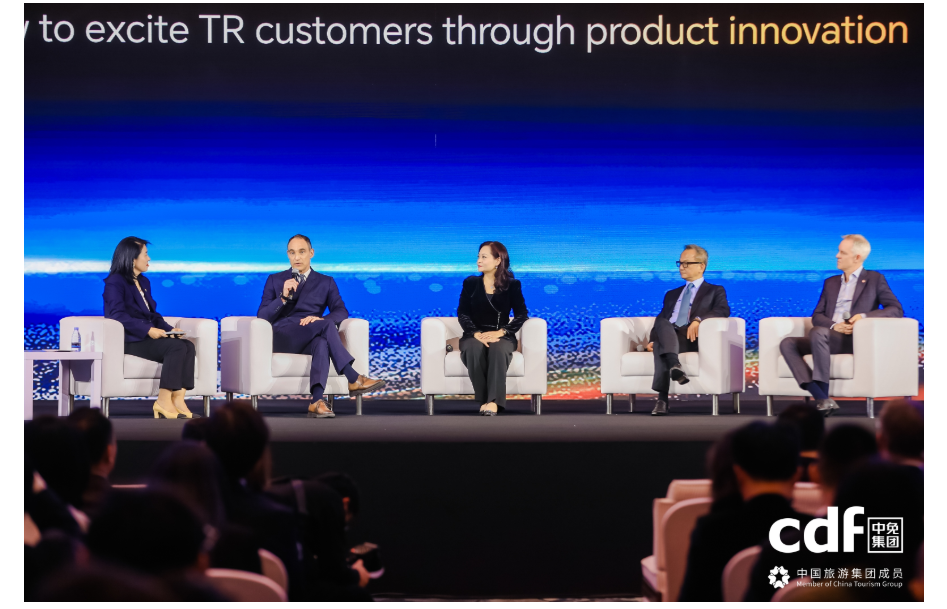 (中免集团副总经理孙芳与雅诗兰黛集团、人头马君度集团、蔻驰、名创优品的全球品牌高管围绕产品创新如何激发旅游零售顾客的消费体验展开探讨)