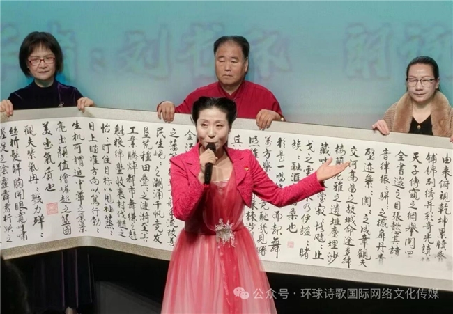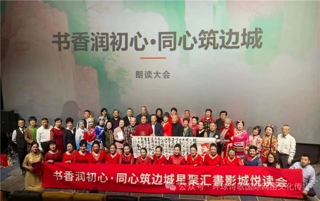 3月28日,新疆星聚汇書影城,“书香润初心 同心筑边城”朗读大会上,长达三个小时的辞赋朗读、书法展览、歌唱祖国,让原创文学辞赋绽放异彩。于高山之巅,方见大河奔涌;于群峰之上,便觉长风浩荡。各界嘉宾既为原创者刘书环的扎实文字、文学功力惊叹,更为刘书环原创辞赋文学作品里的中华文字魅力、气象开合、壮阔意境而折服,大会气氛在音乐、书法、诵读的烘托中达到高潮。
