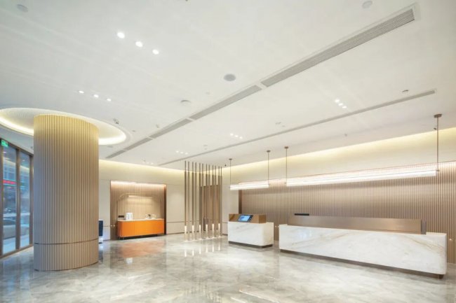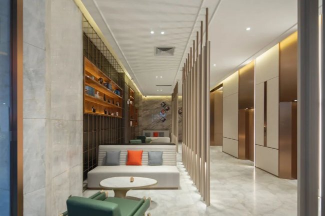 举个例子,星程对原本的大堂则进行了布局的调整,墙面和地面大理石装饰都得以保留,通过家具轻改,成为了客人的休息区,更便于会客及商务洽谈。