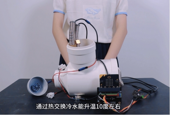 作品聚焦家庭洗浴废水的余热回收利用,通过模块化管道装置实现余热预热冷水和水流发电,同时内置水温监测系统来实时反馈运行状态。这份设计从生活细节出发,既贴近日常使用场景,又具备切实的节能效果,展现了青少年用科技创新助力低碳生活的智慧与担当。