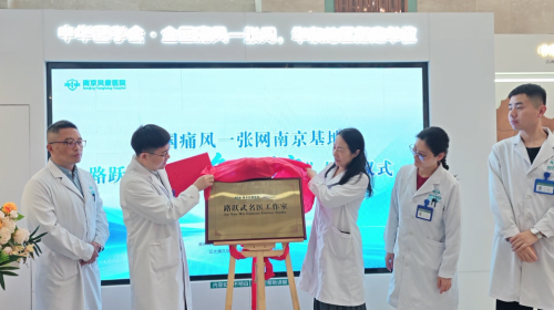 2026年4月4日上午,南京风康医院隆重举行全国痛风一张网南京基地?路跃武教授名医工作室揭牌仪式。国内风湿免疫领域权威专家路跃武教授、南京风康医院业务副院长王凯军、学科带头人汤婷主任、痛风专科崔曙乐主任及医护代表、患者朋友共同见证这一里程碑时刻。
