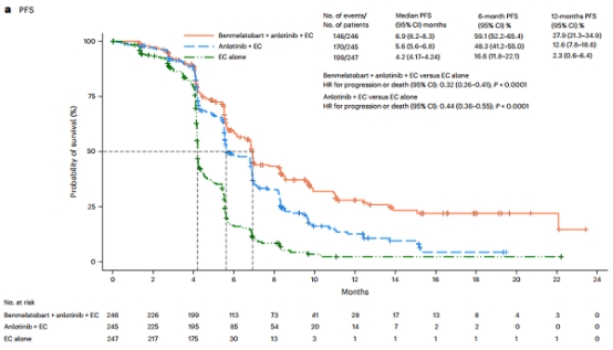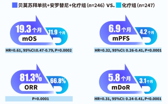 贝莫苏拜单抗+安罗替尼+化疗组VS.化疗组:
