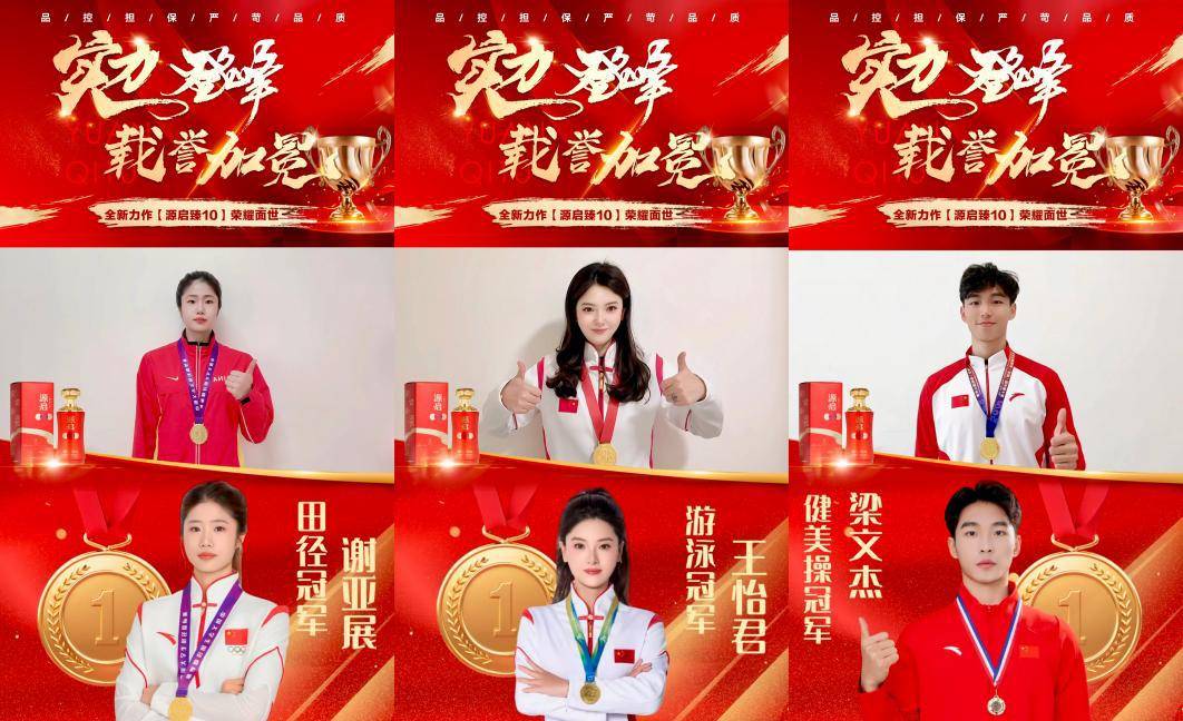张生礼先生为酱渊提字体育健儿田径冠军?谢亚展、游泳冠军?王怡君、健美操冠军?梁文杰,倾情助力源启臻 10祝福,以冠军严谨自律的态度为产品品质发声,共同鉴证源启臻 10 的严苛酿造标准与卓越品质。