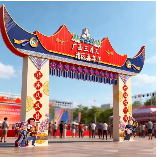民俗游戏区:设置抛绣球、对山歌、竹竿舞、广西狼兵拳等传统游戏体验点,配套教学与小型竞技环节,增强参与感。