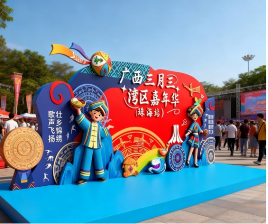 打卡拍照区:搭建广西特色场景,提供民族服饰租赁服务,鼓励市民拍照分享。