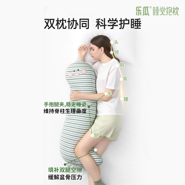在卧室睡眠场景中,FUNMELON乐瓜推出“头枕+睡觉抱枕”双枕协同方案。头枕精准承托颈部生理曲线,乐瓜睡觉抱枕(Sleeping Hug Pillow)则用来支撑侧睡、仰睡时的身体,减少肢体压迫。二者搭配,形成从头到脚的协同支撑,有效调整不良睡姿、呵护脊椎健康,减少晨起时手腿腰背的酸麻。为用户提供更加全面、健康的睡眠解决方案。