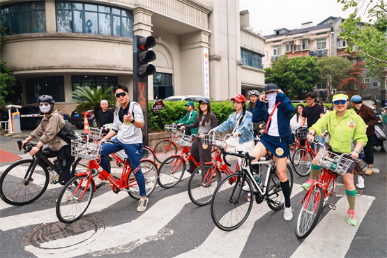 本次骑行路线从黄龙洞出发,途经断桥、抱青别墅、西泠桥畔苏小小墓,再到曲院风荷,全程6.5km,串联起西湖周边最具代表性的森系景致,让骑行者沉浸式感受自然、舒展身心。活动伊始,主理人带领参与者完成五分钟动态热身,通过科学的拉伸与激活动作,充分调动身体肌群和全身关节。骑行中设置了「COLOR RIDE」拍摄环节,参与者抽取颜色任务卡,用镜头定格春日美好,增添互动乐趣。