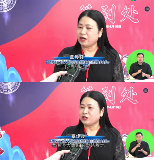 【△活动现场,广西壮族自治区人民政府驻广州办事处珠澳联络处处长覃焕焱接受了专访 她详细阐述了联络处的核心职能与定位——“立足珠澳,服务广西,面向世界”“ 主办方 供图】