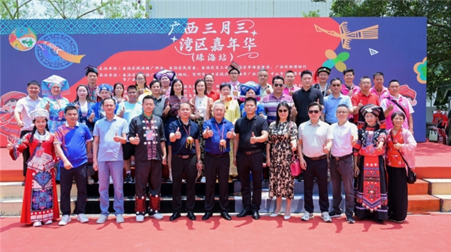 本次活动由广西壮族自治区人民政府驻广州办事处、自治区民族宗教事务委员会、自治区总工会、自治区市场监督管理局、广西北部湾银行等单位联合主办,自治区政府驻广州办事处珠澳联络处、贺州市八步区人民政府、珠海市广西商会、中山市广西商会、江门市广西商会等单位共同承办。活动以 “桂在湾区” 为纽带,既是广西民族文化走进大湾区的生动实践,也是深化粤桂协作、促进桂粤港澳交流融合的重要平台。
