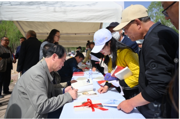 本土作家优秀作品展示签赠区人气爆棚。小说、散文、诗歌……一部部书写中卫风土人情的佳作集中亮相,作家们亲临现场签赠交流,让读者在家门口感受“身边人写身边事”的亲切与温度。
