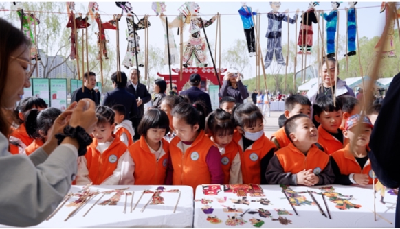 最令人流连忘返的,当属“传承守护·对话古今”优秀传统文化沉浸体验区。非遗传承人徐淑敏指尖翻飞,剪出“指尖上的民族情”;房志农手持拓包,让黄河石的古意跃然纸上;蔡志华的皮影光影摇曳,讲述黄河边的传奇;姚思杰的黄河古瓷,诉说着千年的窑火匠心。古琴、笛子、埙、箜篌四种传统乐器轮番奏响,国乐悠扬与书声琅琅交织成一曲文化自信的华章。一旁,“小小涂色笔 浓浓读书情”童趣涂鸦活动中,孩子们用稚嫩的画笔描绘心中的书香世界,阅读的种子在幼小的心灵悄然生根。